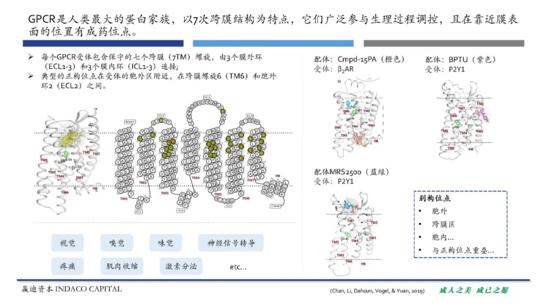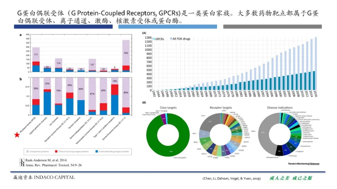 G蛋白偶联受体(G Protein-Coupled Receptors, GPCRs)是人体内最大的一类蛋白家族。GPCR广泛参与生理过程的调控,与多种疾病相关,且结构上有结合口袋,是很好的成药位点。目前已有超过475种以GPCR为靶点的药物获批上市,销售额占整体药物市场的27%。