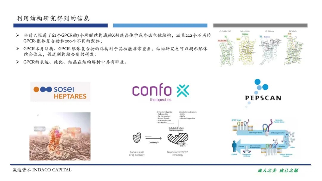 总体来说,以GPCR为靶点进行药物研发难度较大,与其他药物研发相比,涉及一些特殊环节。如GPCR蛋白的表达、纯化及药物筛选技术等都是成药中仍需解决的问题。越来越多的公司在这些方面进行布局,开发了一系列新技术。总体上,靶向GPCR的多肽药物研发是很有希望的方向。